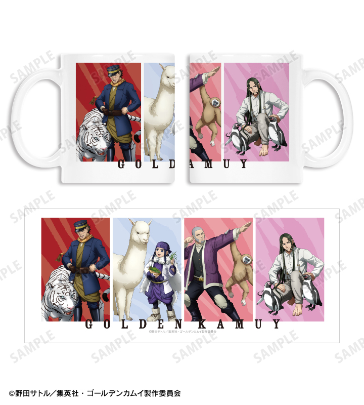 TVアニメ『ゴールデンカムイ』×「東武動物公園」のコラボレーションアイテム「描き下ろし 集合A 動物とのふれあいver. マグカップ」の登場です。