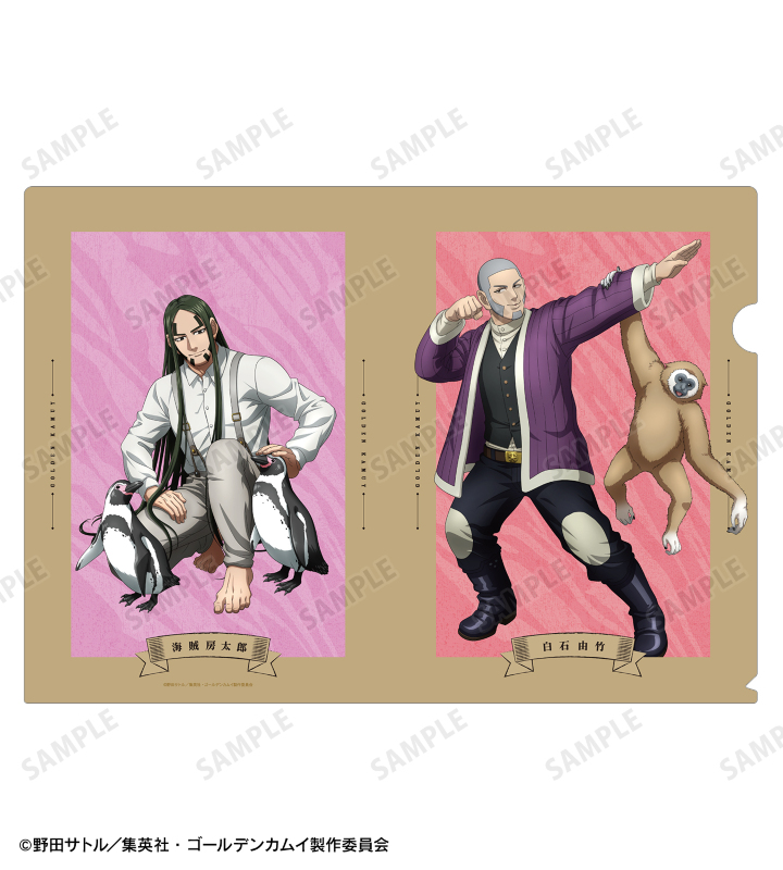 TVアニメ『ゴールデンカムイ』×「東武動物公園」のコラボレーションアイテム「描き下ろし 白石由竹&海賊房太郎 動物とのふれあいver. クリアファイル」の登場です。