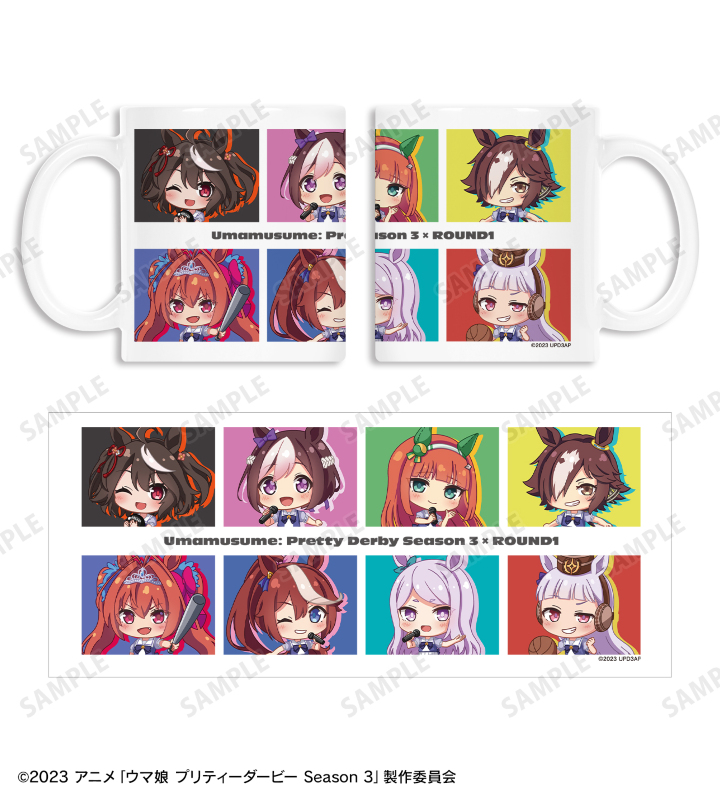 TVアニメ『ウマ娘 プリティーダービー Season 3』×「ROUND1」のコラボレーションアイテム「ROUND1コラボ ちびキャラ マグカップ 集合 ver.B」の登場です。
