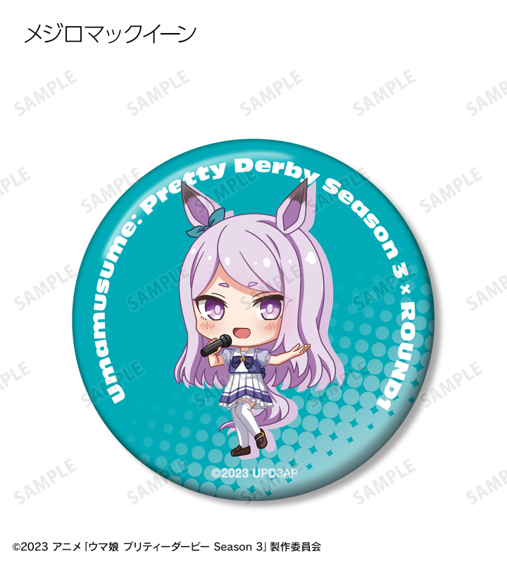 TVアニメ『ウマ娘 プリティーダービー Season 3』×「ROUND1」のコラボレーションアイテム「ROUND1コラボ ちびキャラ トレーディング缶バッジ」の登場です。