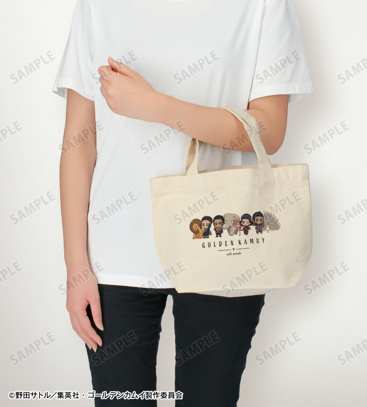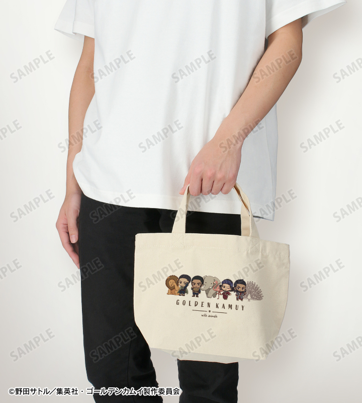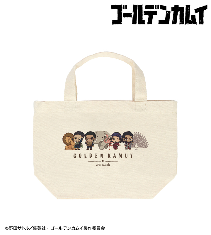 TVアニメ『ゴールデンカムイ』×「東武動物公園」のコラボレーションアイテム「集合C ちびキャラ 動物とのふれあいver. ランチトートバッグ」の登場です。