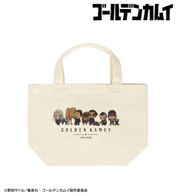 TVアニメ『ゴールデンカムイ』×「東武動物公園」のコラボレーションアイテム「集合D ちびキャラ 動物とのふれあいver. ランチトートバッグ」の登場です。