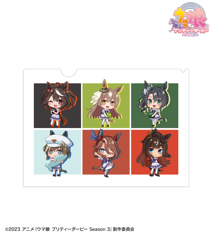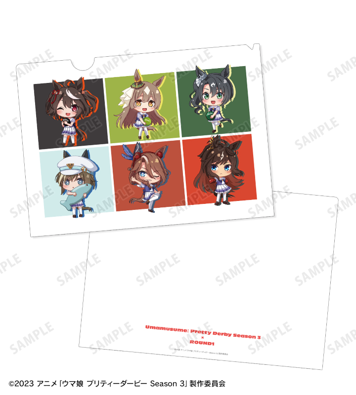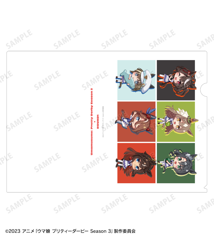 TVアニメ『ウマ娘 プリティーダービー Season 3』×「ROUND1」のコラボレーションアイテム「ROUND1コラボ ちびキャラ クリアファイル 集合 ver.A」の登場です。