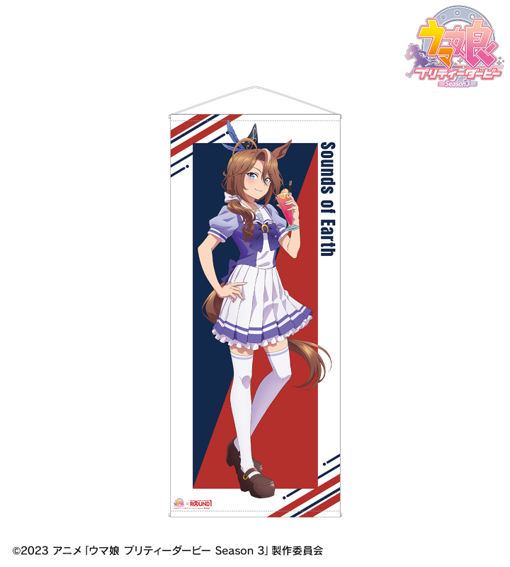 TVアニメ『ウマ娘 プリティーダービー Season 3』×「ROUND1」のコラボレーションアイテム「ROUND1コラボ BIGタペストリー サウンズオブアース」の登場です。