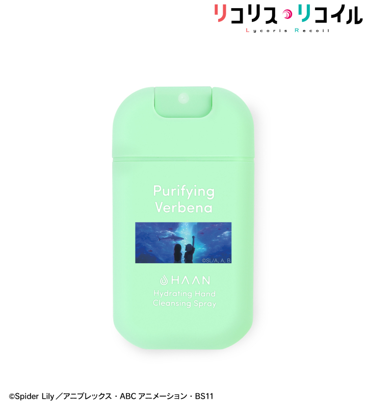 TVアニメ「リコリス・リコイル」×「HAAN」のコラボレーションアイテム「HAAN コラボ 錦木千束&井ノ上たきな ハンドクレンジングスプレー ver.A」の登場です。