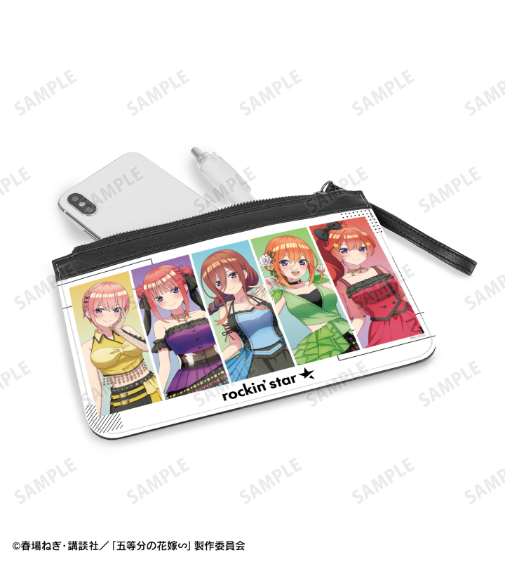 TVスペシャルアニメ「五等分の花嫁∽」×「rockin’star★」のコラボレーションアイテム「rockin’starコラボ 描き下ろし 集合 ロックアイドルver. PUレザーフラットポーチ」の登場です。