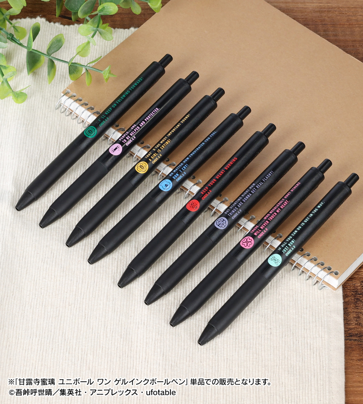 アニメ「鬼滅の刃」から「三菱鉛筆/ユニボール ワン」のオリジナルアイテム「甘露寺蜜璃 ユニボール ワン ゲルインクボールペン」の登場です。