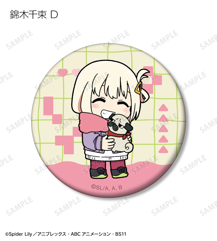 TVアニメ「リコリス・リコイル」×「荒*」のコラボレーションアイテム「描き起こし Art by 荒* ちびキャラ トレーディングマット缶バッジ」の登場です。