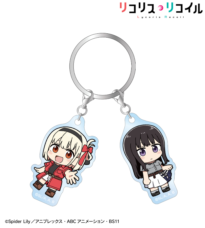TVアニメ「リコリス・リコイル」×「荒*」のコラボレーションアイテム「描き起こし 錦木千束&井ノ上たきな Art by 荒* ちびキャラ 2連アクリルキーホルダー ver.C」の登場です。