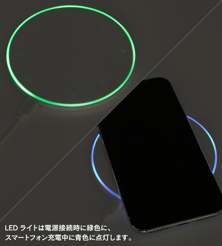 Qi対応のスマートフォンを置くことで充電できるワイヤレス充電器です。