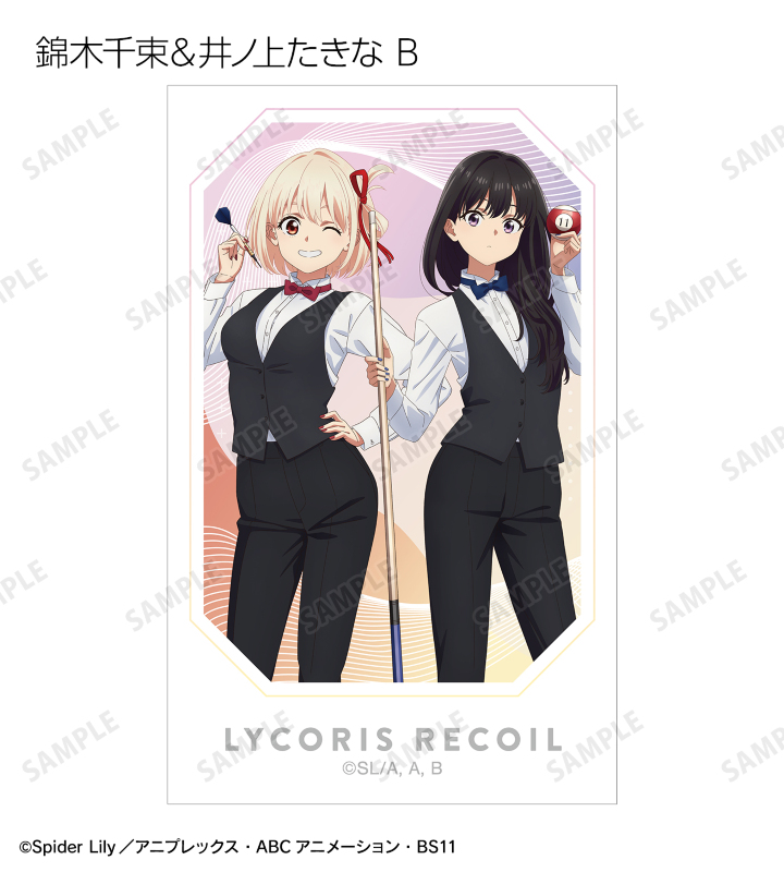 TVアニメ「リコリス・リコイル」×「ROUND1」のコラボレーションアイテム「描き下ろし ハイカラ/プレイヤーver. トレーディングインスタントカメラ風イラストカード」の登場です。