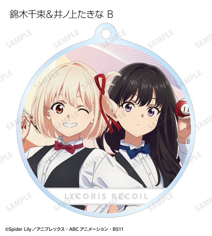 錦木千束、井ノ上たきなの描き下ろしイラストをアクリルキーホルダーに仕上げました。