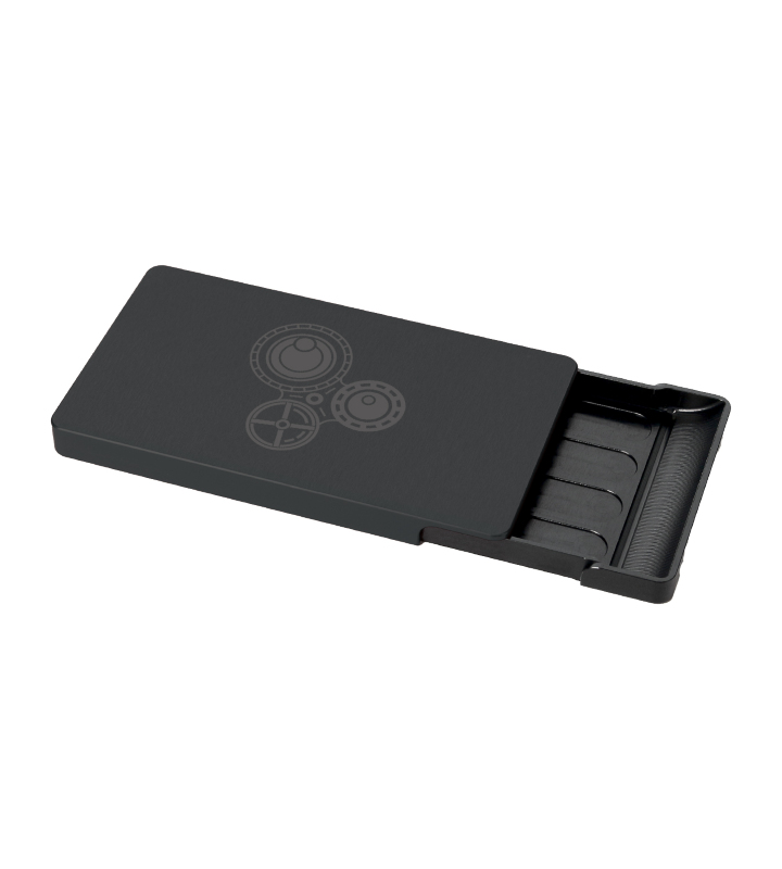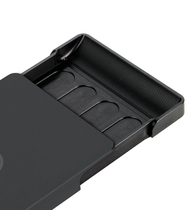 ジュラルミンから削り出して製作したカードケースで、ビジネスシーンにもマッチするアイテムです。