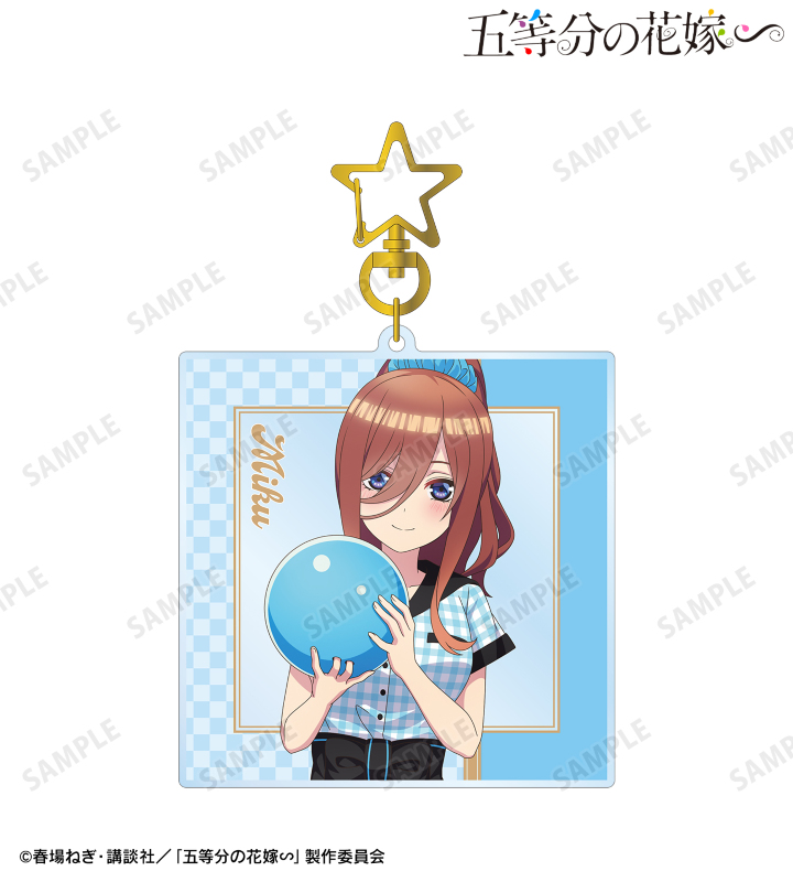 中野三玖の描き下ろしイラストをキャラカラーに合わせたBIGなアクリルキーホルダーに仕上げました。
