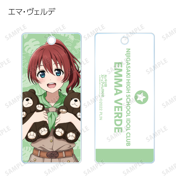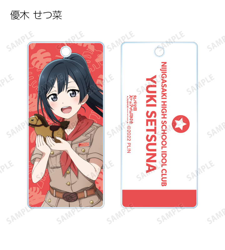 高咲 侑、上原 歩夢、中須 かすみ、桜坂 しずく、朝香 果林、宮下 愛、近江 彼方、優木 せつ菜、エマ・ヴェルデ、天王寺 璃奈、三船 栞子、ミア・テイラー、鐘 嵐珠の描き下ろしイラストをアクリルキータグに仕上げました。