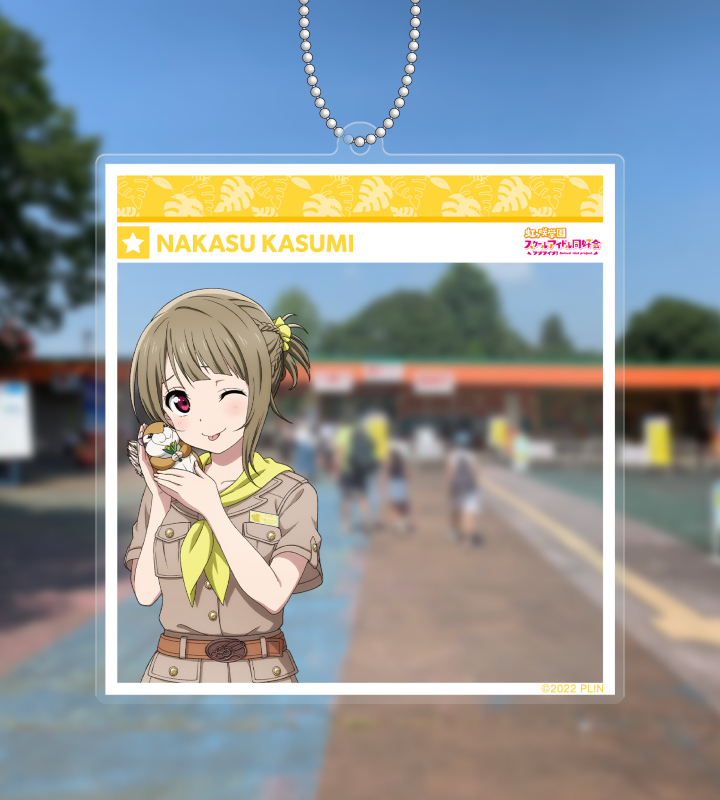 『ラブライブ!虹ヶ咲学園スクールアイドル同好会』×「東武動物公園」のコラボレーションアイテム「東武動物公園コラボ 描き下ろし 中須 かすみ サファリルックver. SNS風BIGアクリルキーホルダー」の登場です。