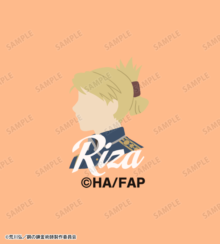 リザ・ホークアイのキャラクターカラーのカラフルなボディに、キャラクターの横顔をロゴ風にデザインしました。