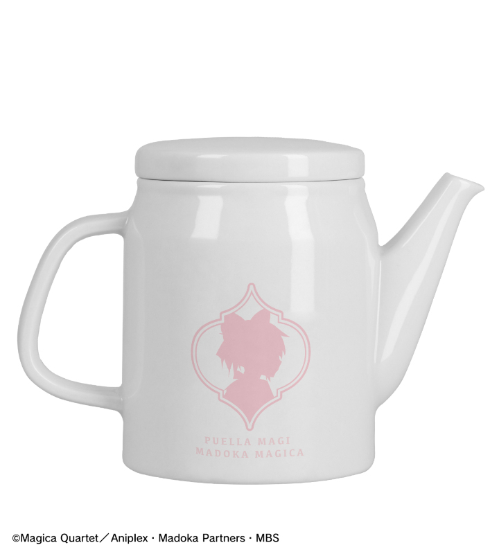 鹿目まどかのイニシャルの「M」、コスチュームのモチーフ、ソウルジェム、シルエットイラストをフロントに配置し、ティーポットに仕上げました。