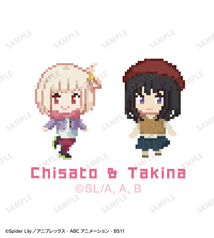 錦木千束、井ノ上たきなのドットイラスト、キャラクターの名前をボールペンに仕上げました。
