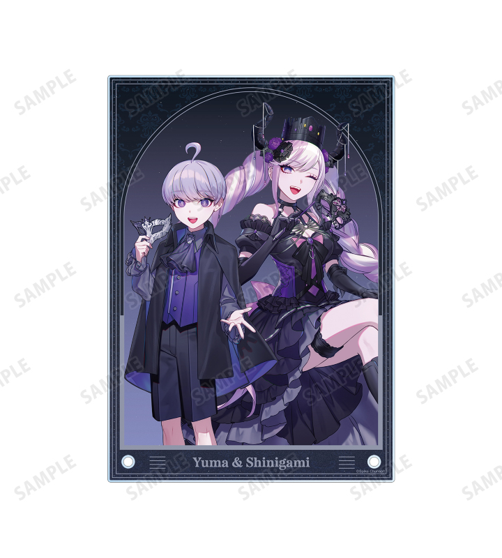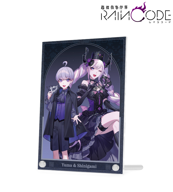 『超探偵事件簿 レインコード』×「本田ロアロ」のコラボレーションアイテム「本田ロアロさんイラスト ユーマ&死に神ちゃん 仮面舞踏会ver. A5アクリルパネル」の登場です。