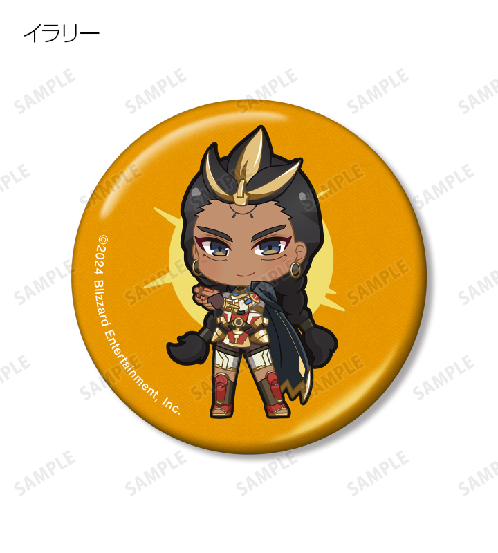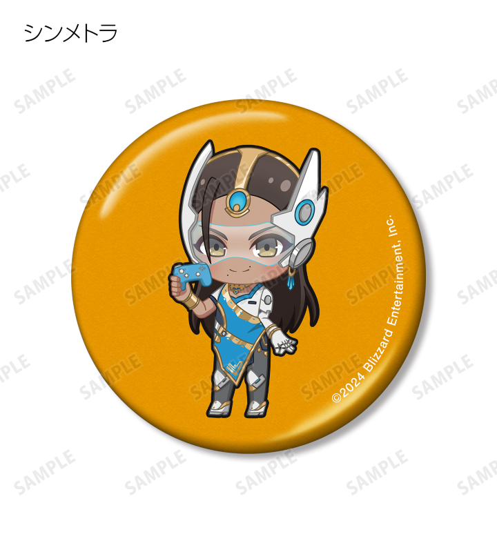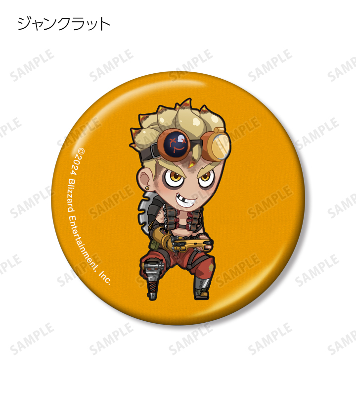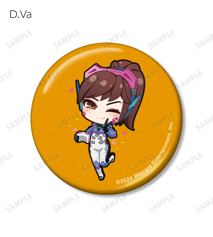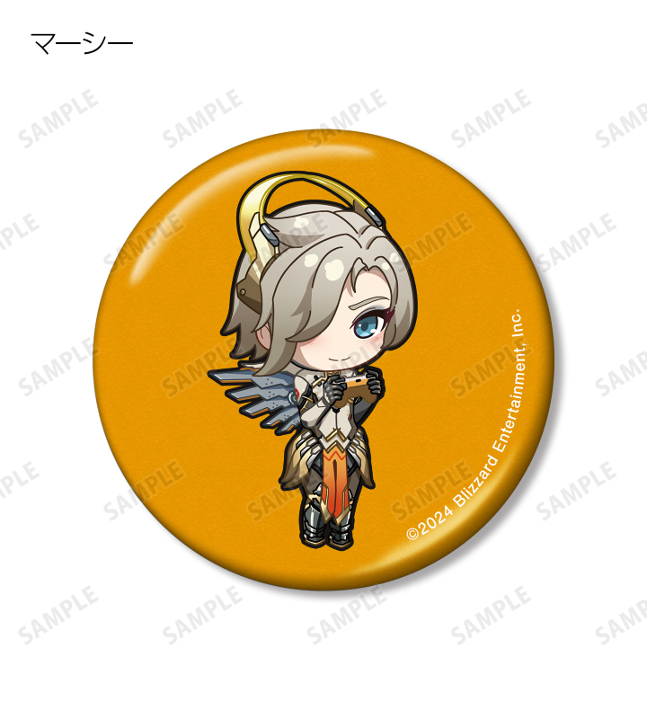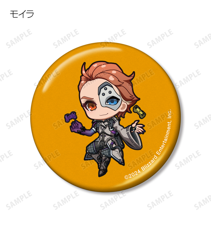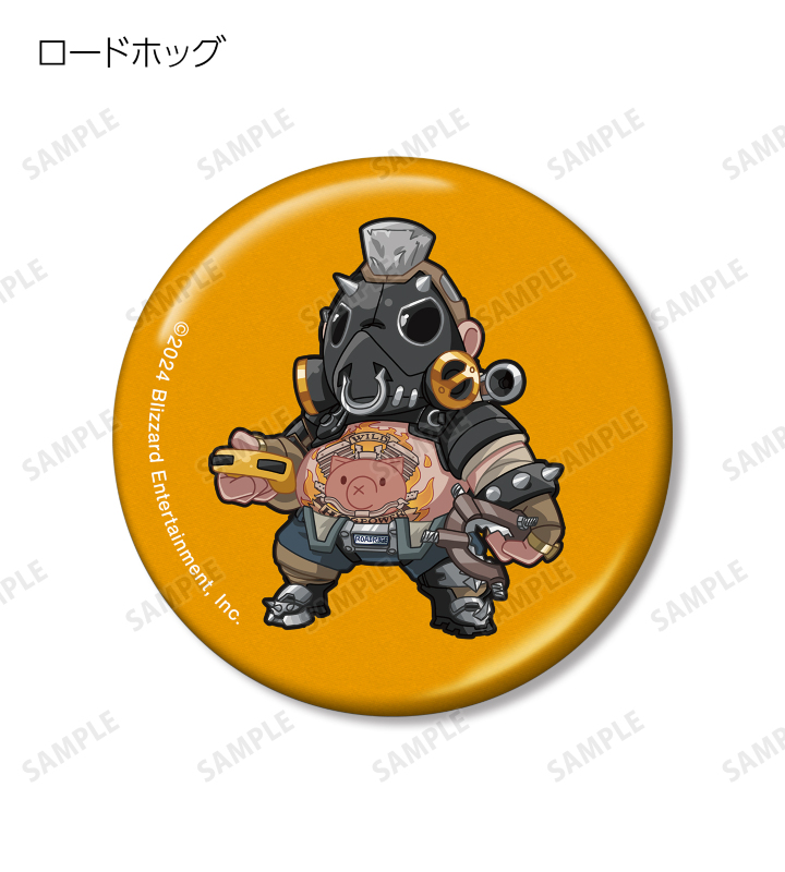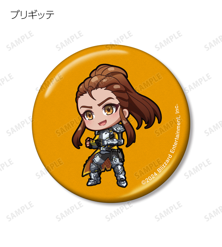 D.Va、アッシュ、イラリー、キャスディ、シンメトラ、ジャンクラット、ソジョーン、バスティオン、ブリギッテ、ベンチャー、マーシー、モイラ、レッキング・ボール、ロードホッグのちびキャライラストをメタリック仕様の缶バッジに仕上げました。