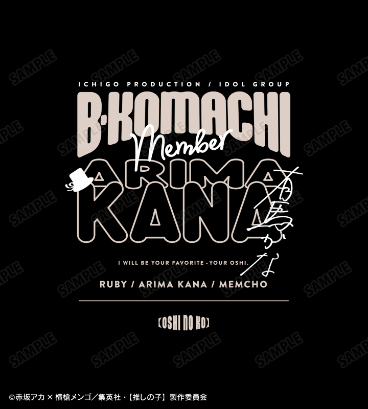 キャラクターの名前、B小町、作品内の名言、サインをBIGなシルエットTシャツに仕上げました。