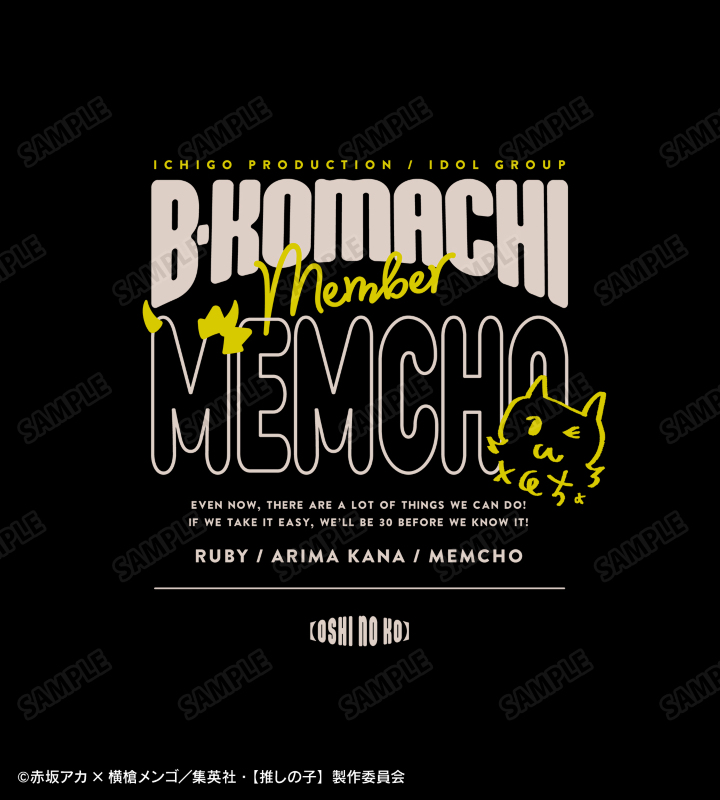 TVアニメ『【推しの子】』×「ar-Unity」のコラボレーションアイテム「『推しの子』 MEMちょ BIGシルエットTシャツ」の登場です。