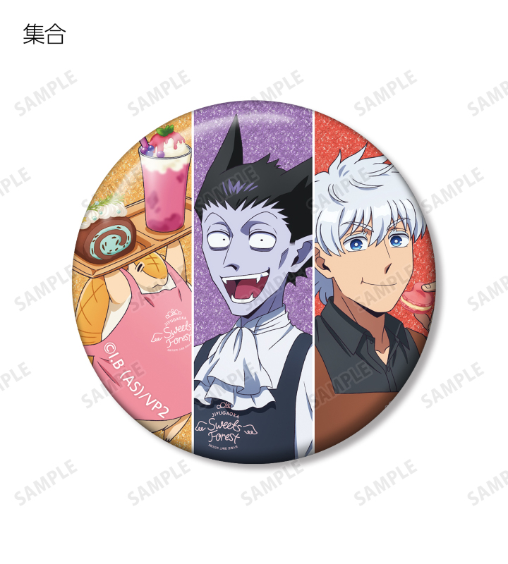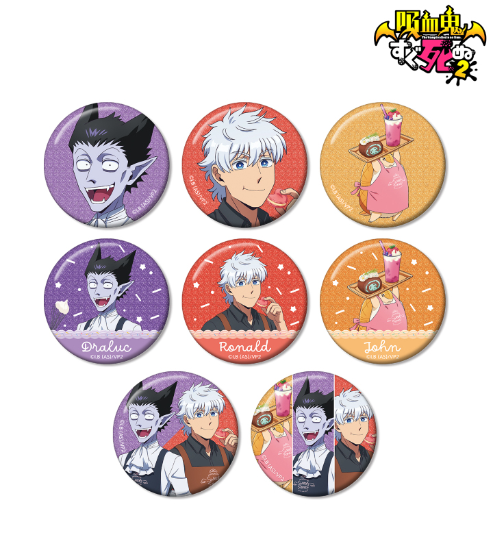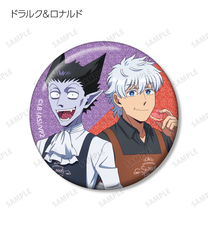 『吸血鬼すぐ死ぬ2』×「自由が丘スイーツフォレスト」のコラボレーションアイテム「描き下ろし スイーツver. トレーディンググリッター缶バッジ」の登場です。