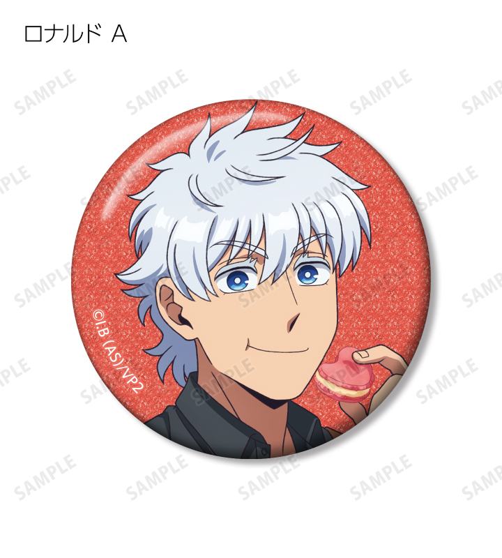 ドラルク、ロナルド、ジョンの描き下ろしイラスト、キャラクターの名前をグリッター加工を施した缶バッジに仕上げました。