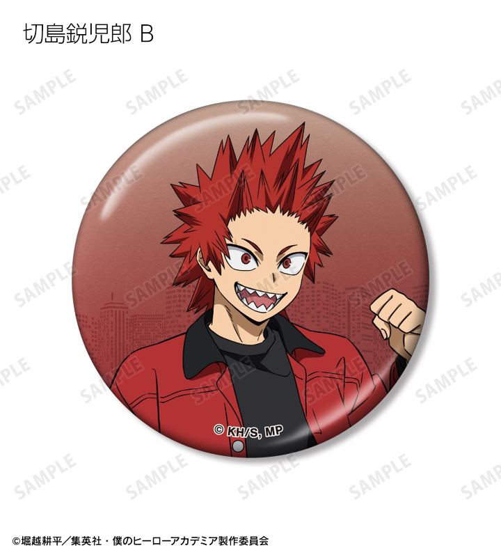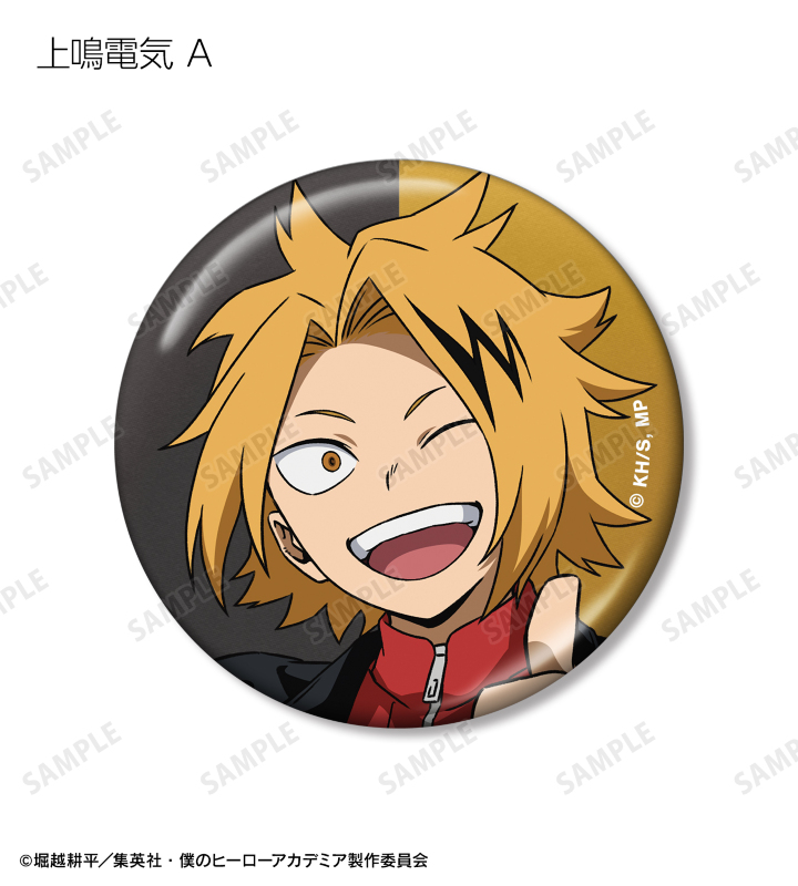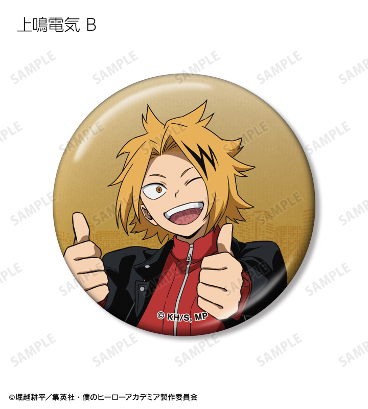 緑谷出久、爆豪勝己、轟焦凍、切島鋭児郎、上鳴電気、瀬呂範太の描き下ろしビジュアルをメタリック仕様の缶バッジに仕上げました。