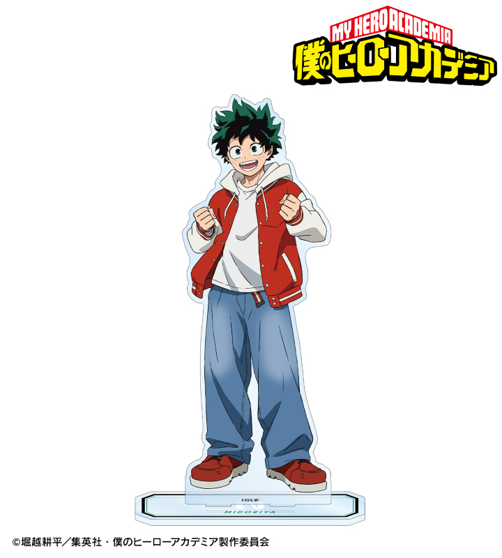 緑谷出久の描き下ろしビジュアルを特大サイズのアクリルスタンドに仕上げました。