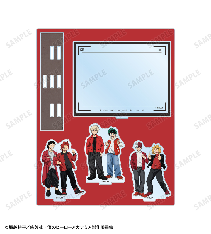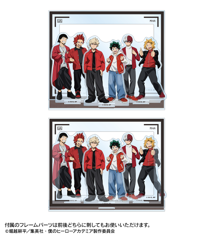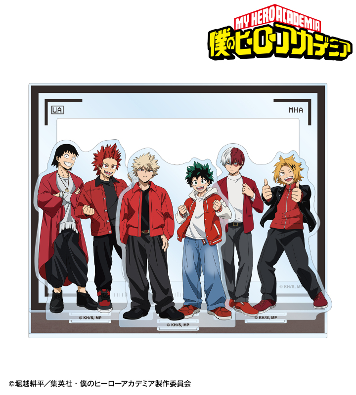 緑谷出久、爆豪勝己、轟焦凍、切島鋭児郎、上鳴電気、瀬呂範太の描き下ろしビジュアルをアクリルジオラマに仕上げました。