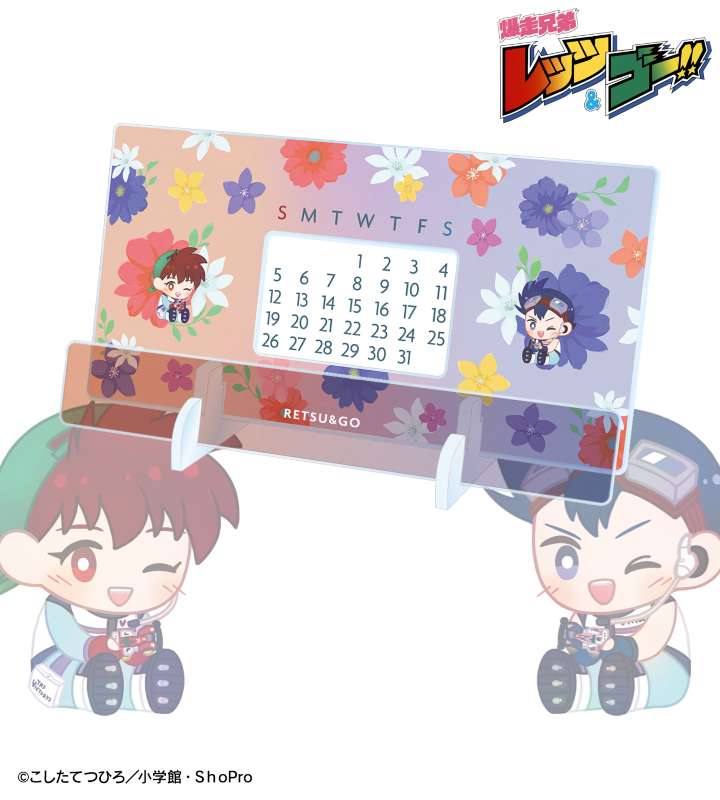 TVアニメ「爆走兄弟レッツ&ゴー!!」×「ar-Unity」のコラボレーションアイテム「星馬 烈&星馬 豪 Botania 卓上アクリル万年カレンダー」の登場です。