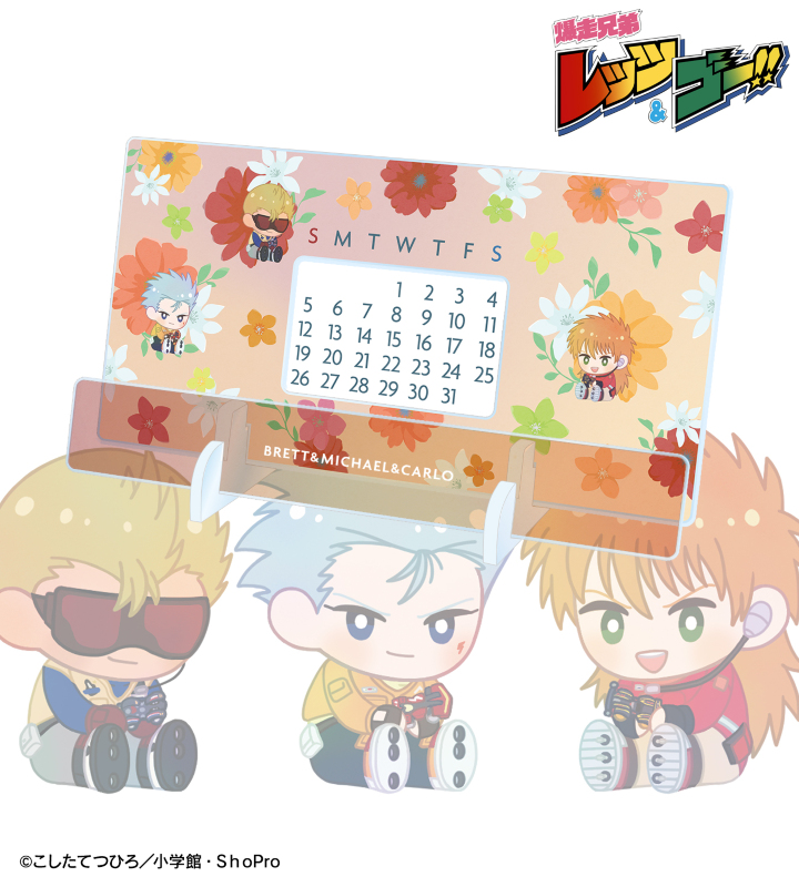 TVアニメ「爆走兄弟レッツ&ゴー!!」×「ar-Unity」のコラボレーションアイテム「ブレット&ミハエル&カルロ Botania 卓上アクリル万年カレンダー」の登場です。