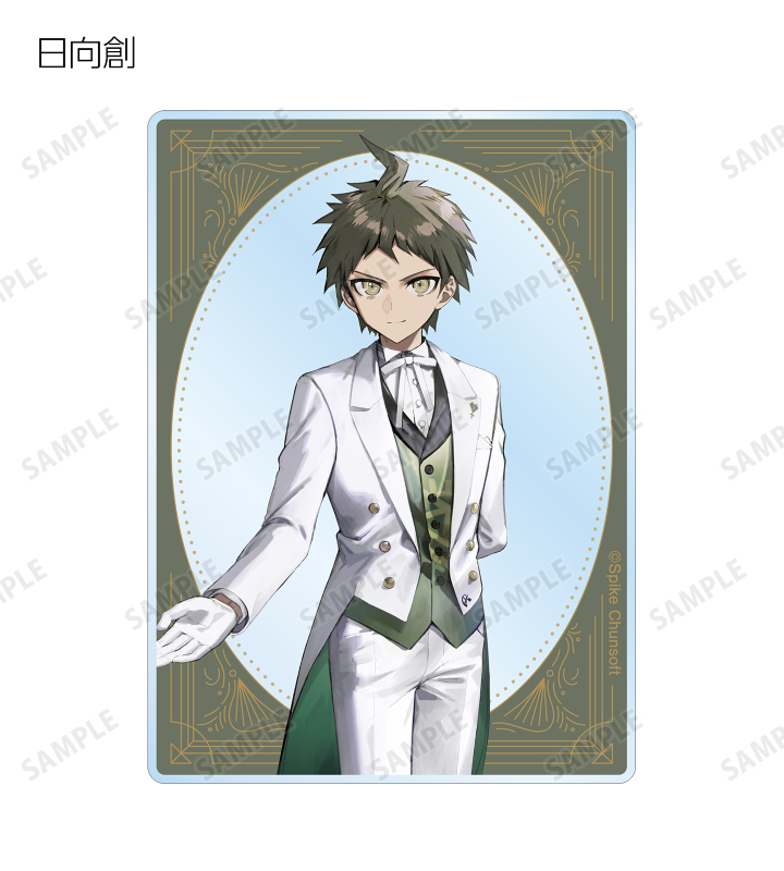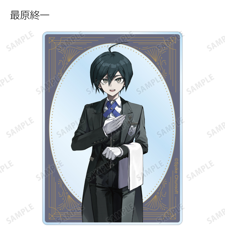 緜先生描き下ろしイラストの苗木誠、霧切響子、セレスティア・ルーデンベルク、江ノ島盾子、日向創、狛枝凪斗、七海千秋、カムクライズル、赤松楓、天海蘭太郎、王馬小吉、最原終一をアクリルカードに仕上げました。
