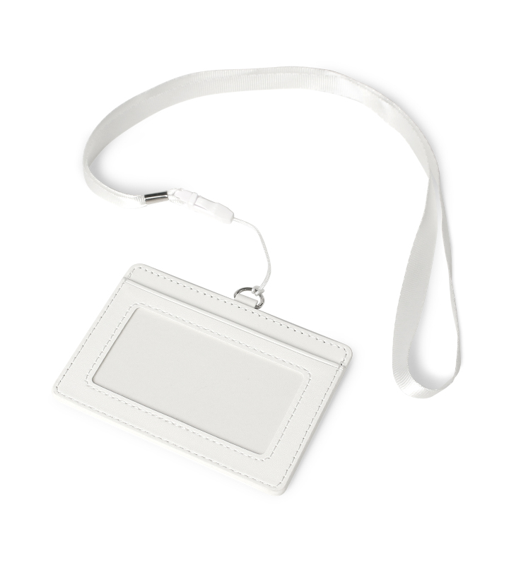 クリアポケットと通常のポケットの2ポケット仕様となっておりますので、名刺と入室管理カード、交通系ICカードと社員証といった様々な用途にお使いいただけます。また、首から下げることが可能なネックストラップ付きです。