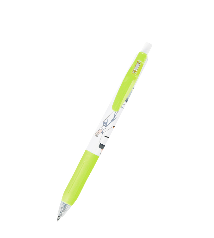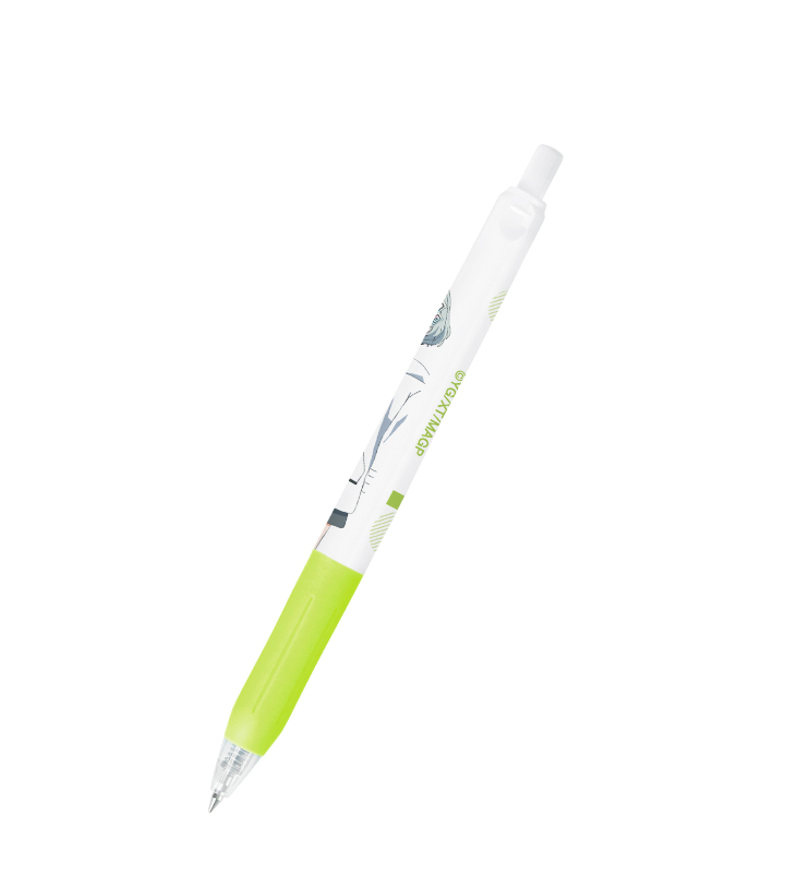 0号のイラスト、キャラクターの名前をサラサクリップのボールペンに仕上げました。