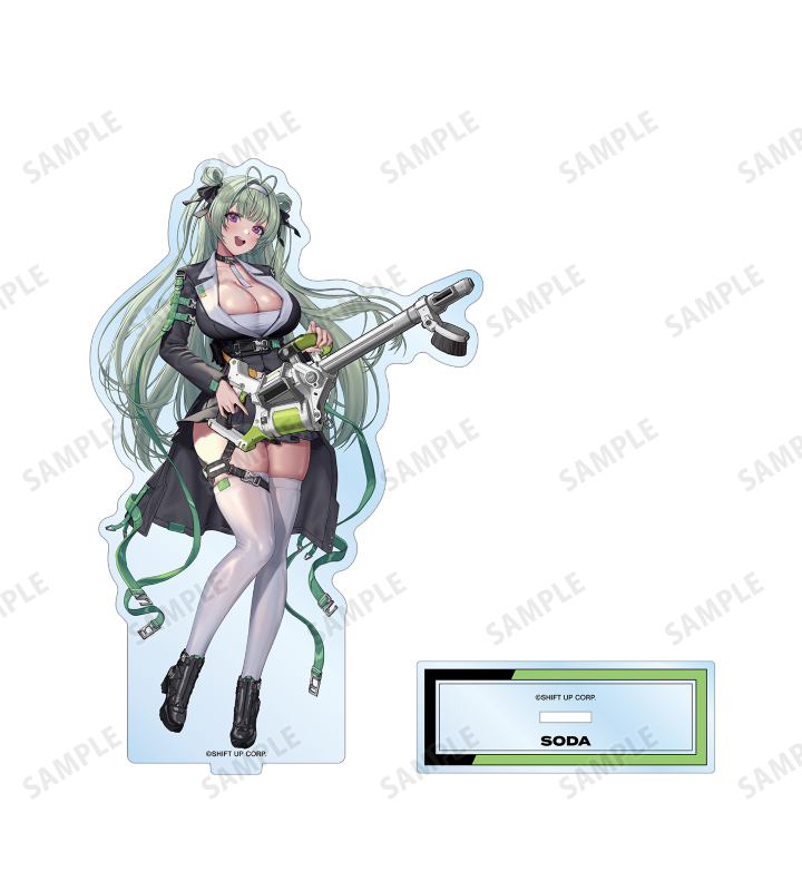 『勝利の女神:NIKKE』×「LOVECACAO」のコラボレーションアイテム「LOVECACAOさんイラスト ソーダ タクティカルファッションver. BIGアクリルスタンド」の登場です。