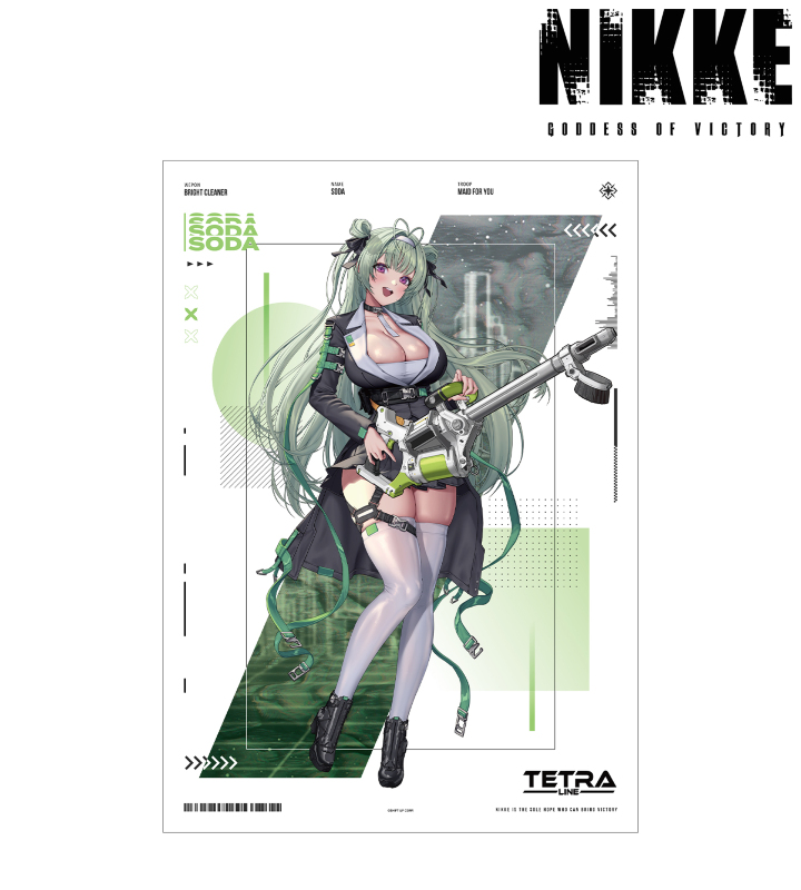 『勝利の女神:NIKKE』×「LOVECACAO」のコラボレーションアイテム「LOVECACAOさんイラスト ソーダ タクティカルファッションver. A3マット加工ポスター」の登場です。