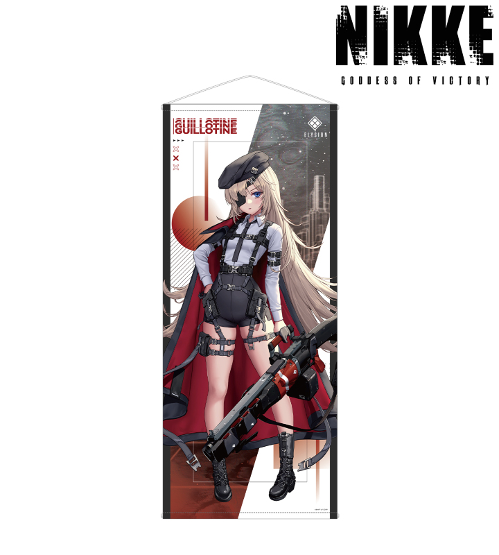 『勝利の女神:NIKKE』×「LOVECACAO」のコラボレーションアイテム「LOVECACAOさんイラスト ギロチン タクティカルファッションver. 等身大タペストリー」の登場です。