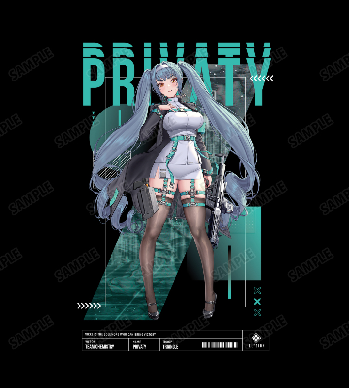 『勝利の女神:NIKKE』×「LOVECACAO」のコラボレーションアイテム「LOVECACAOさんイラスト プリバティ タクティカルファッションver. BIGシルエットTシャツ」の登場です。