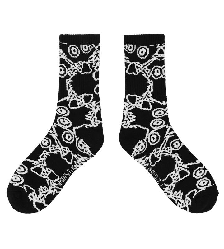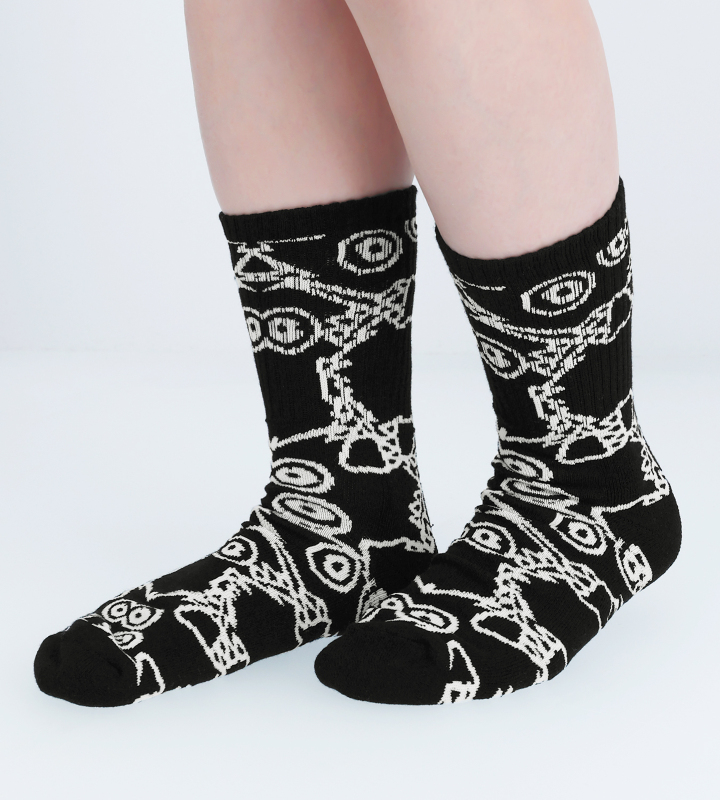 増殖するクリボーをイメージした総柄デザインを靴下に仕上げました。