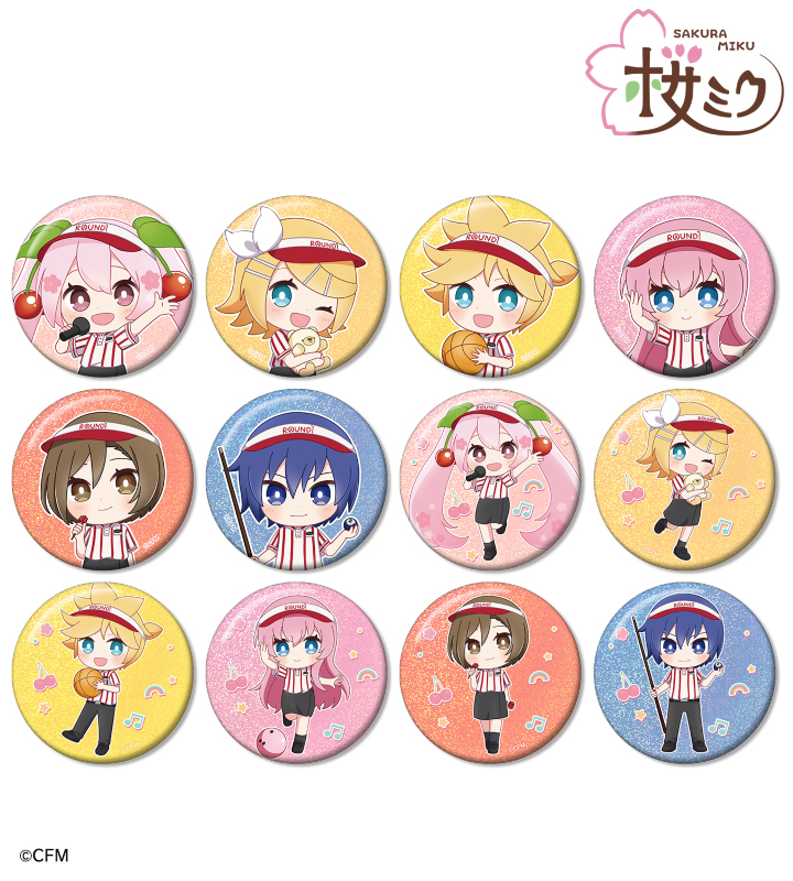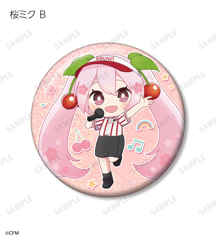 『桜ミク』×「ROUND1」のコラボレーションアイテム「トレーディング ちびキャラ ホログラム缶バッジ」の登場です。