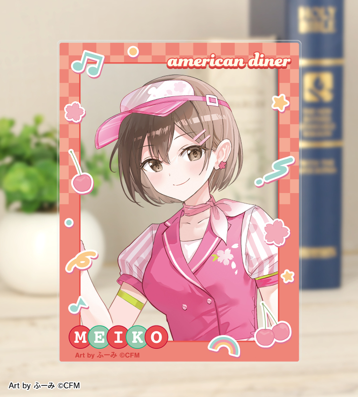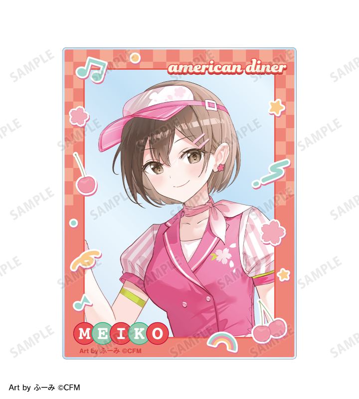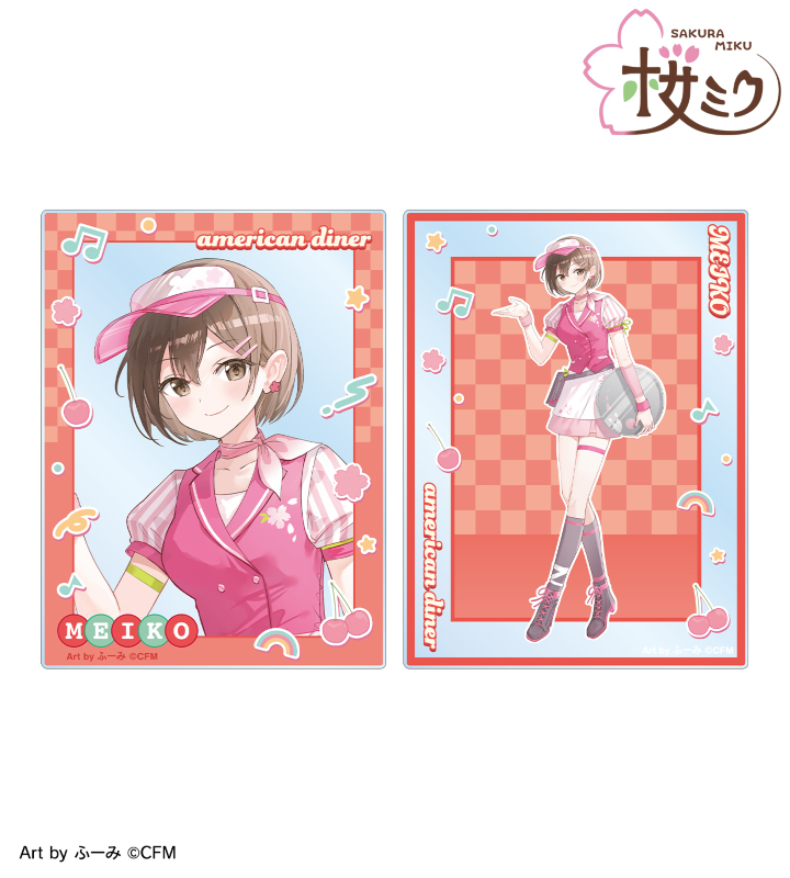 『桜ミク』×「ROUND1」のコラボレーションアイテム「描き下ろし MEIKO アメリカンダイナーver. Art by ふーみ アクリルカード2枚セット」の登場です。