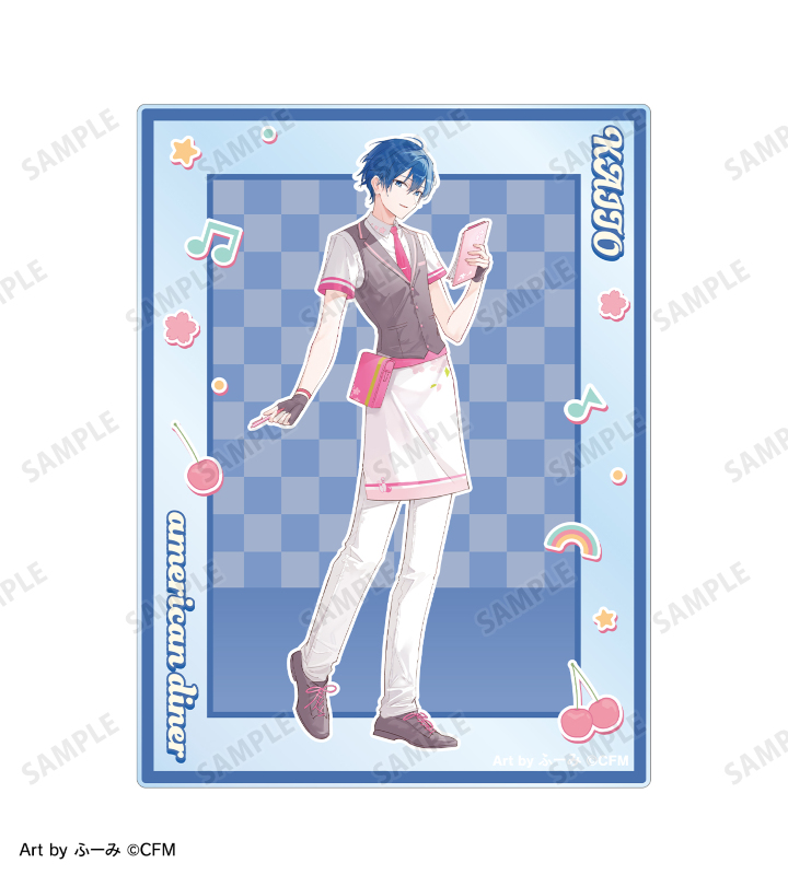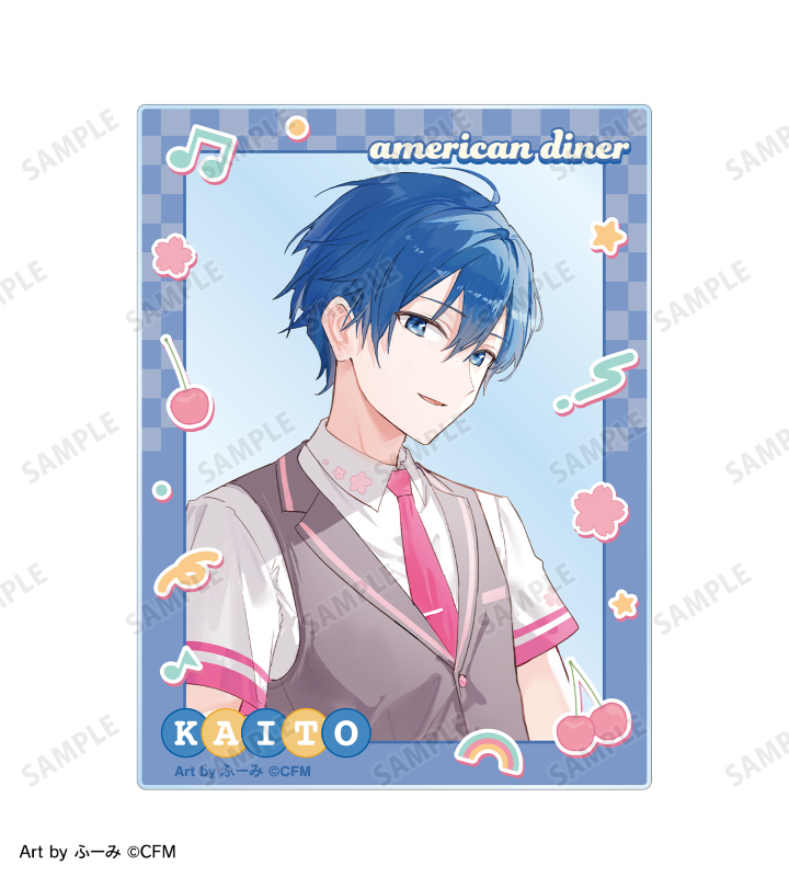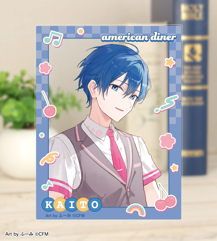 『桜ミク』×「ROUND1」のコラボレーションアイテム「描き下ろし KAITO アメリカンダイナーver. Art by ふーみ アクリルカード2枚セット」の登場です。