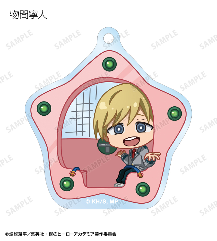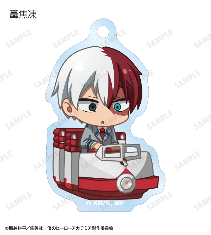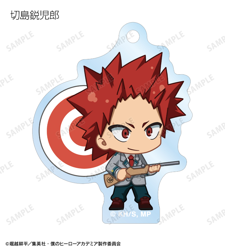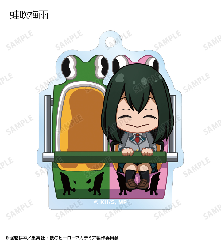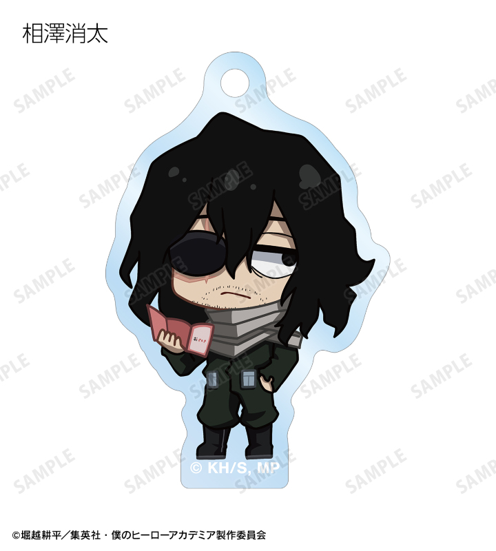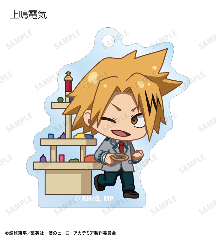 緑谷出久、爆豪勝己、麗日お茶子、飯田天哉、轟焦凍、蛙吹梅雨、切島鋭児郎、上鳴電気、耳郎響香、物間寧人、心操人使、相澤消太、死柄木弔、荼毘、トガヒミコのちびキャラビジュアルをアクリルキーホルダーに仕上げました。