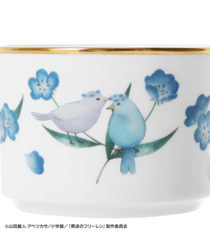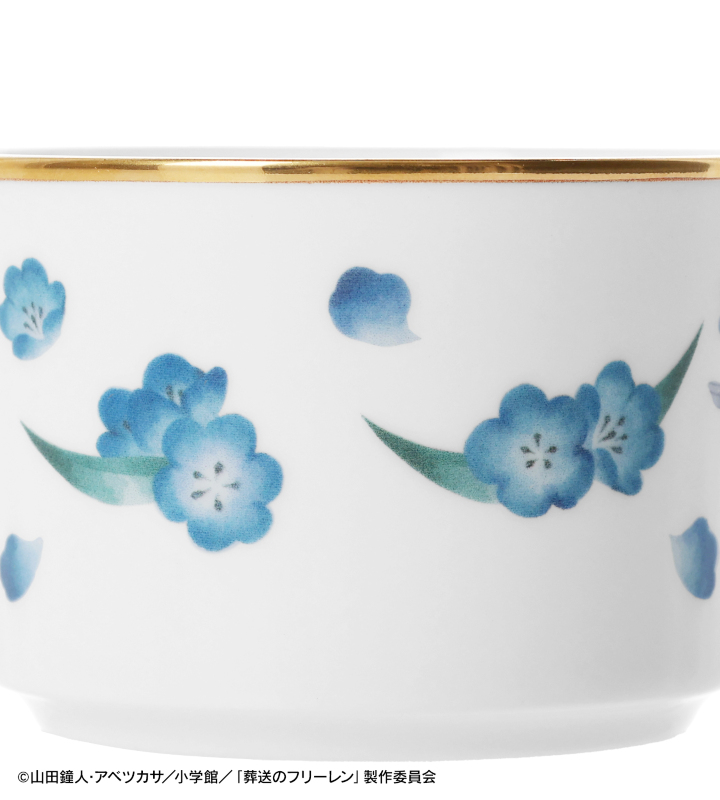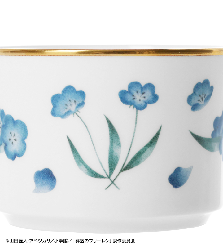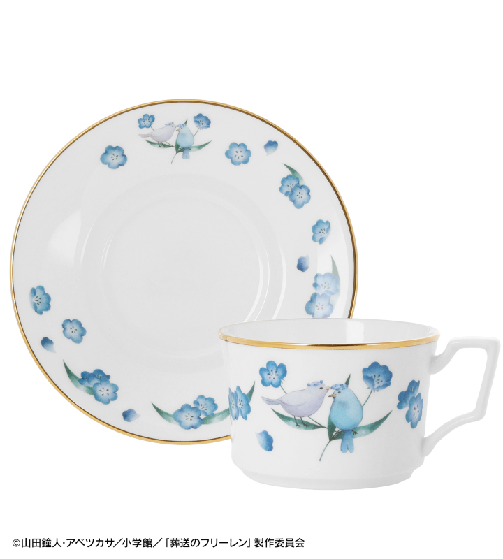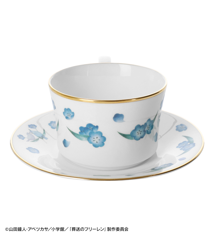 カップ裏、ソーサー裏にはノリタケロゴと、作品タイトル『葬送のフリーレン』の文字をそれぞれ印字しております。
