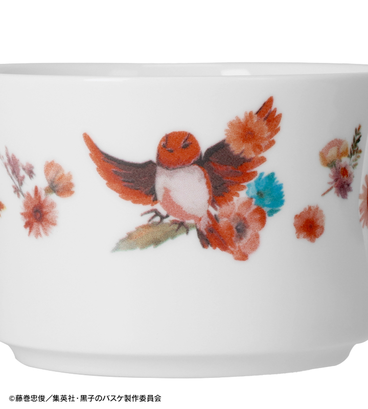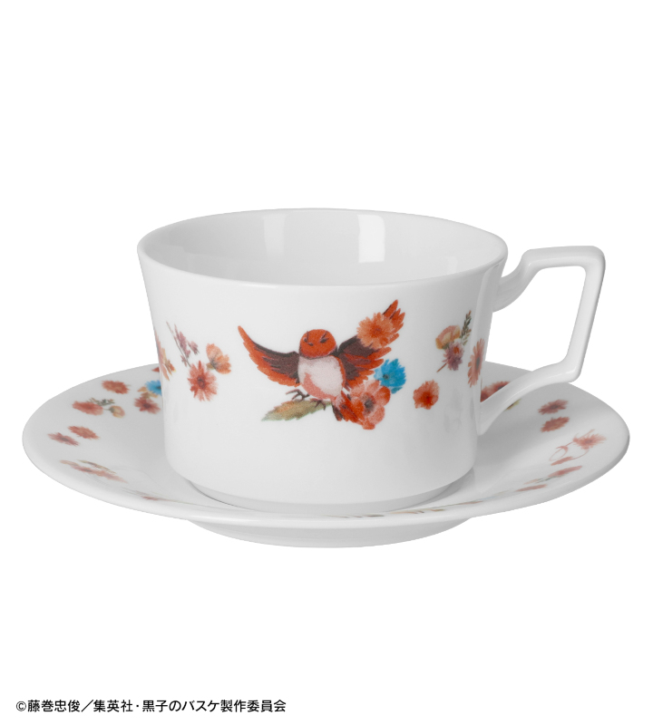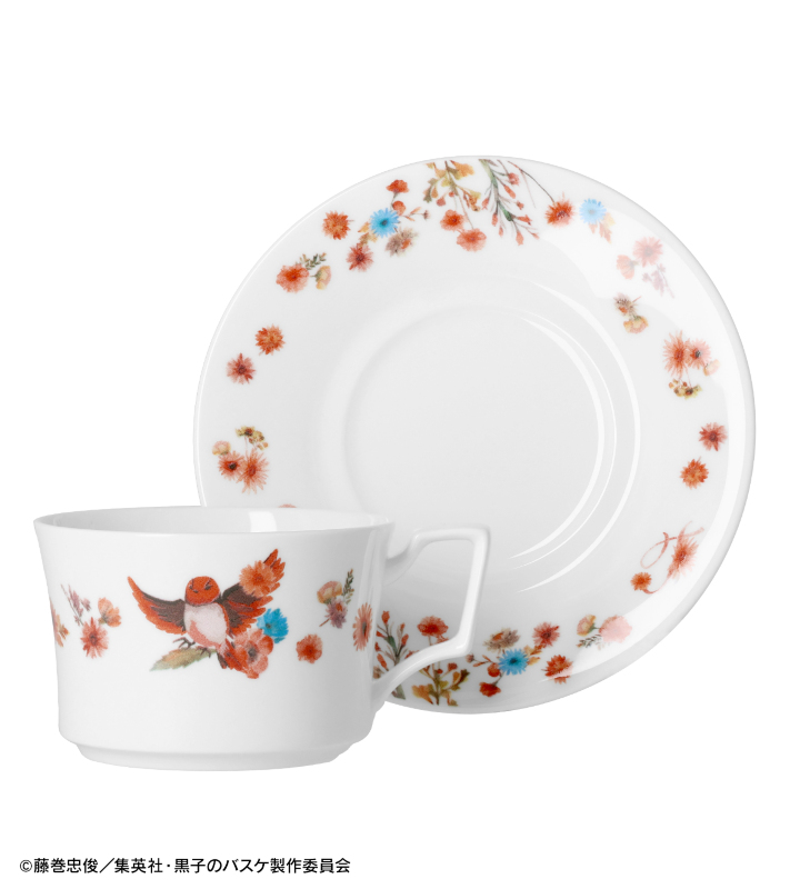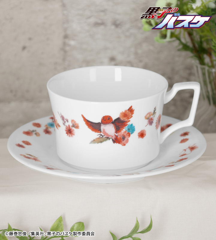 火神大我をイメージした鳥と色鮮やかな花が描かれたカップ&ソーサーです。
