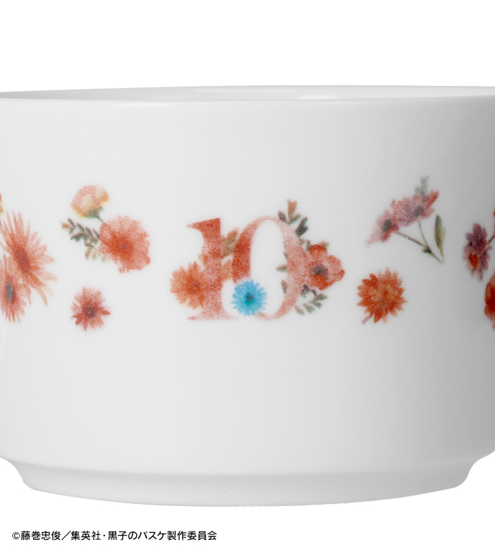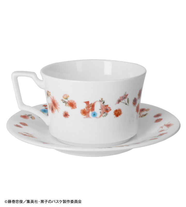 カップ、ソーサー全体にキャラクターカラー、相棒のカラーのお花を散りばめ、カップには背番号である10、ソーサーにはイニシャルである"T"を忍ばせています。