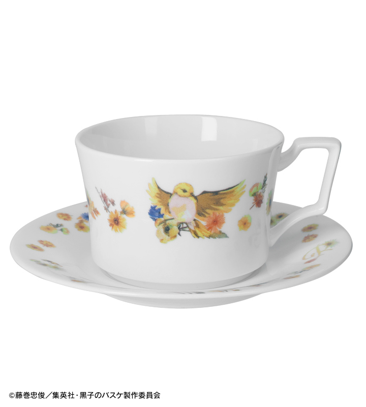 黄瀬涼太をイメージした鳥と色鮮やかな花が描かれたカップ&ソーサーです。